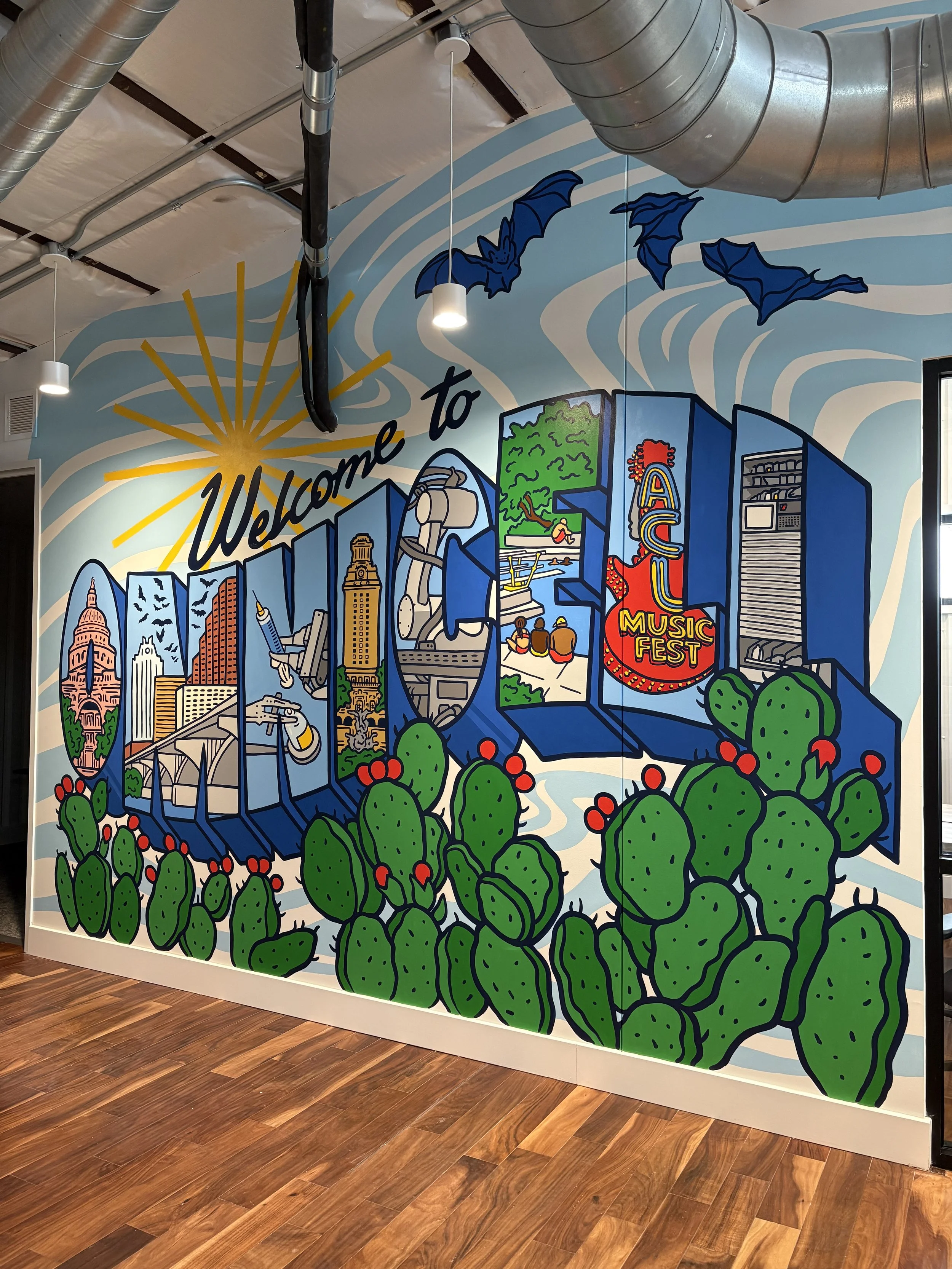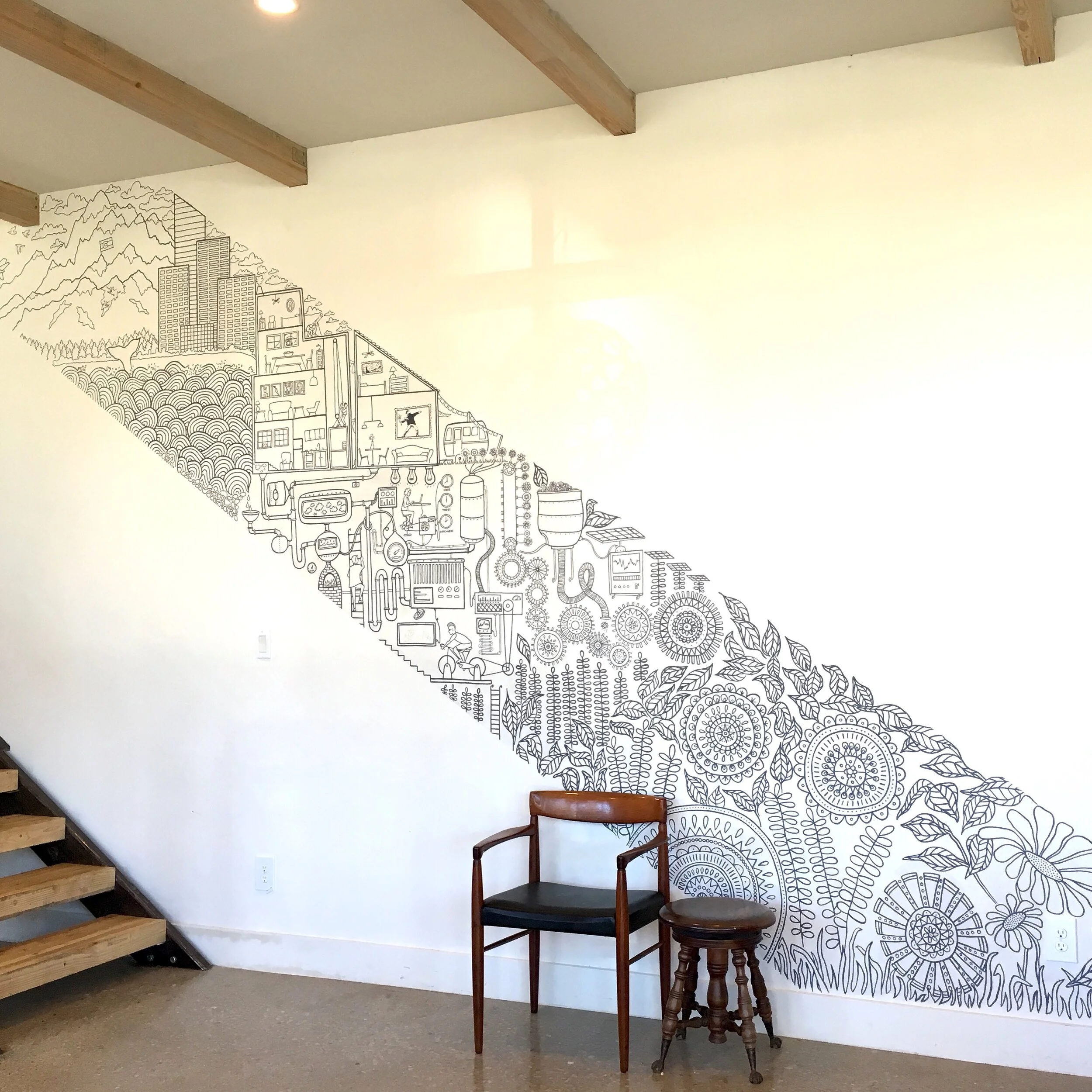 Avery O's hand-painted mural work is specialized for bold spaces looking to hold their own, including offices, residential properties and public spaces.